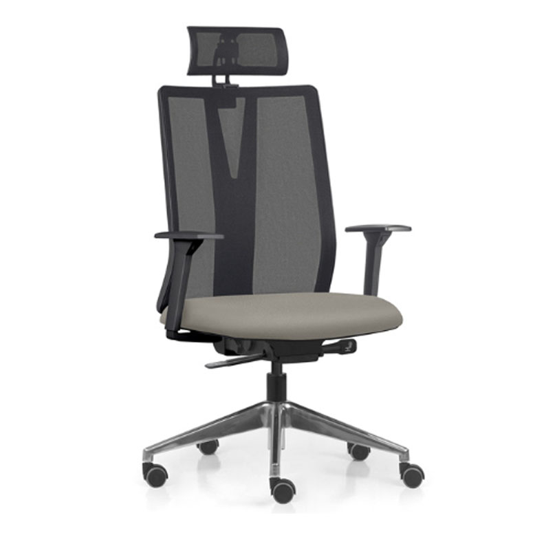 Disponível com ou sem apoio de cabeça, e com encosto em tela ou tapeçado.
